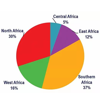 中非貿(mào)易研究中心分析,北非和南部非洲在非洲地區(qū)進(jìn)口水平最高。南部非洲在進(jìn)口家具消費(fèi)中所占份額最高,占37%,而北非的進(jìn)口消費(fèi)占30%。
