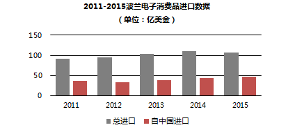 2015年波蘭進口中國產(chǎn)品達223.8億美金。中國已成為波蘭進口第二來源國(14年第四進口來源國)。