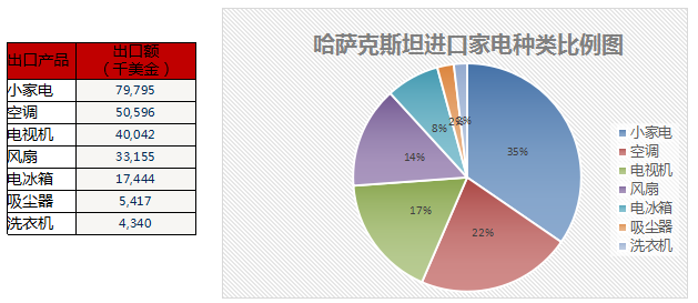 其中位居哈薩克進(jìn)口(自中國(guó))前三位的是:小家電、空調(diào)、電視機(jī)。