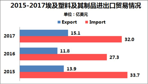 埃及是一個塑料消費大國,人均塑 料消費已達到25kg。巨大的市場 需求使埃及每年都要進口大量的塑 料成品,自2012年以來的進口規(guī) 模便一直保持在30億美元以上。