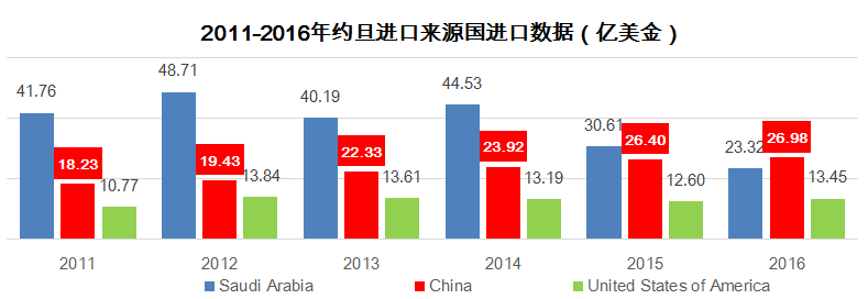 據(jù)約旦國(guó)家統(tǒng)計(jì)局?jǐn)?shù)字,2016年約旦總進(jìn)口額為192.61億美元,同比下降了5.92%;