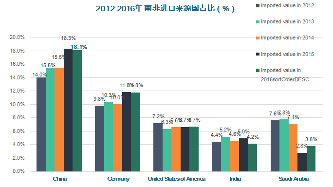 ?2016年南非貨物進出口額為1518億美元,其中,中國與南非雙邊貨物進出口額為204億美元;
