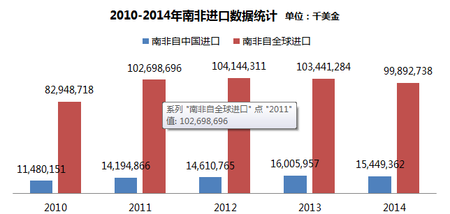 ?2016年南非貨物進出口額為1518億美元,其中,中國與南非雙邊貨物進出口額為204億美元;
