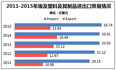 1、埃及是一個塑料消費大國,人均塑料消費已達到25kg。巨大的市場需求使埃及每年都要進口大量的塑料成品,自2012年以來的進口規(guī)模便一直保持在30億美元以上。